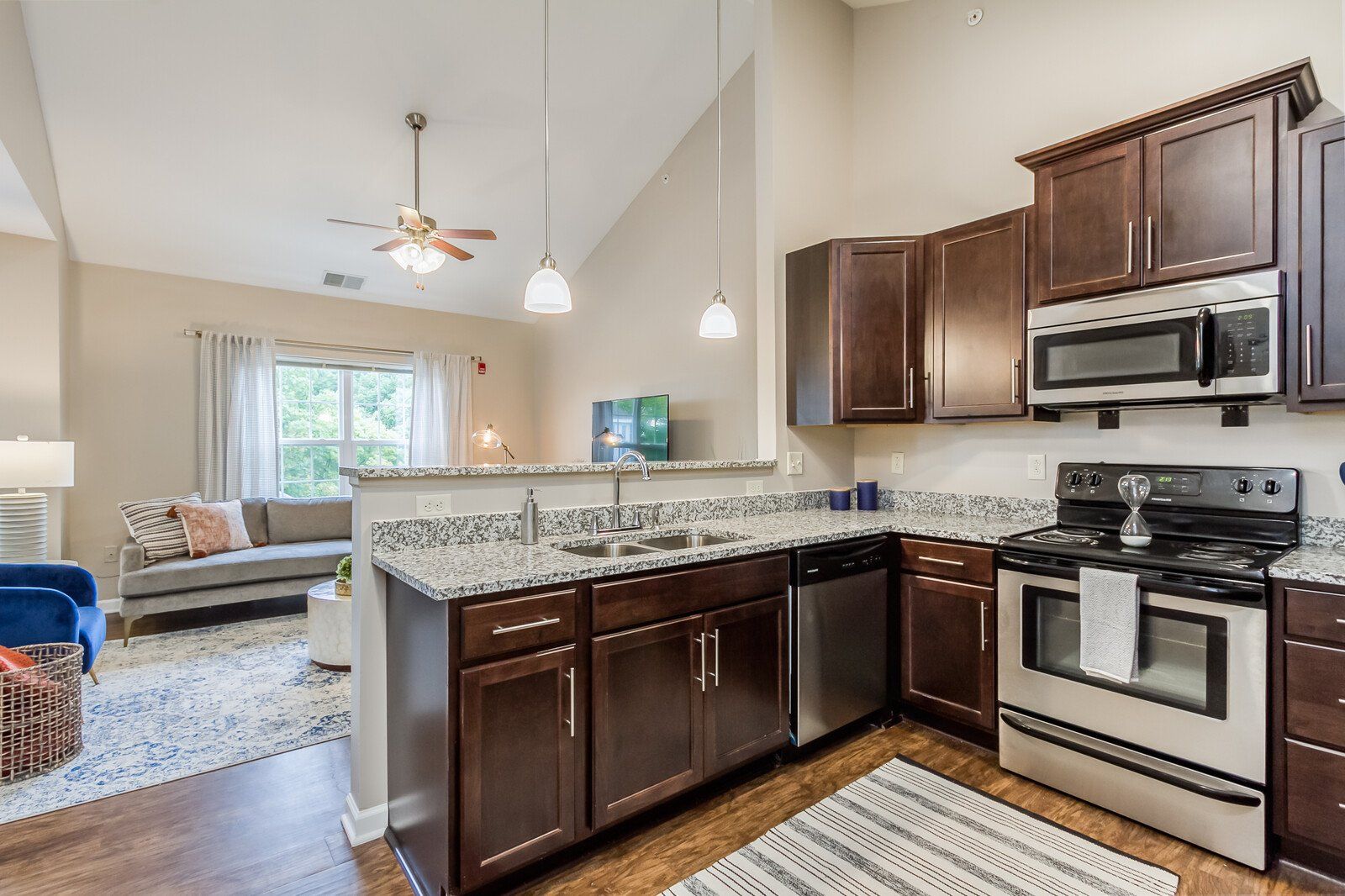 The homes at Waters Edge are inspired by contemporary architecture and modern design. Throughout each one, two, and three-bedroom apartment, you'll be surrounded by modern design, neutral color palettes, and harmonious finishes. Our community utilizes natural materials to offer a living environment that is stylish, comfortable, and complementary to any décor.