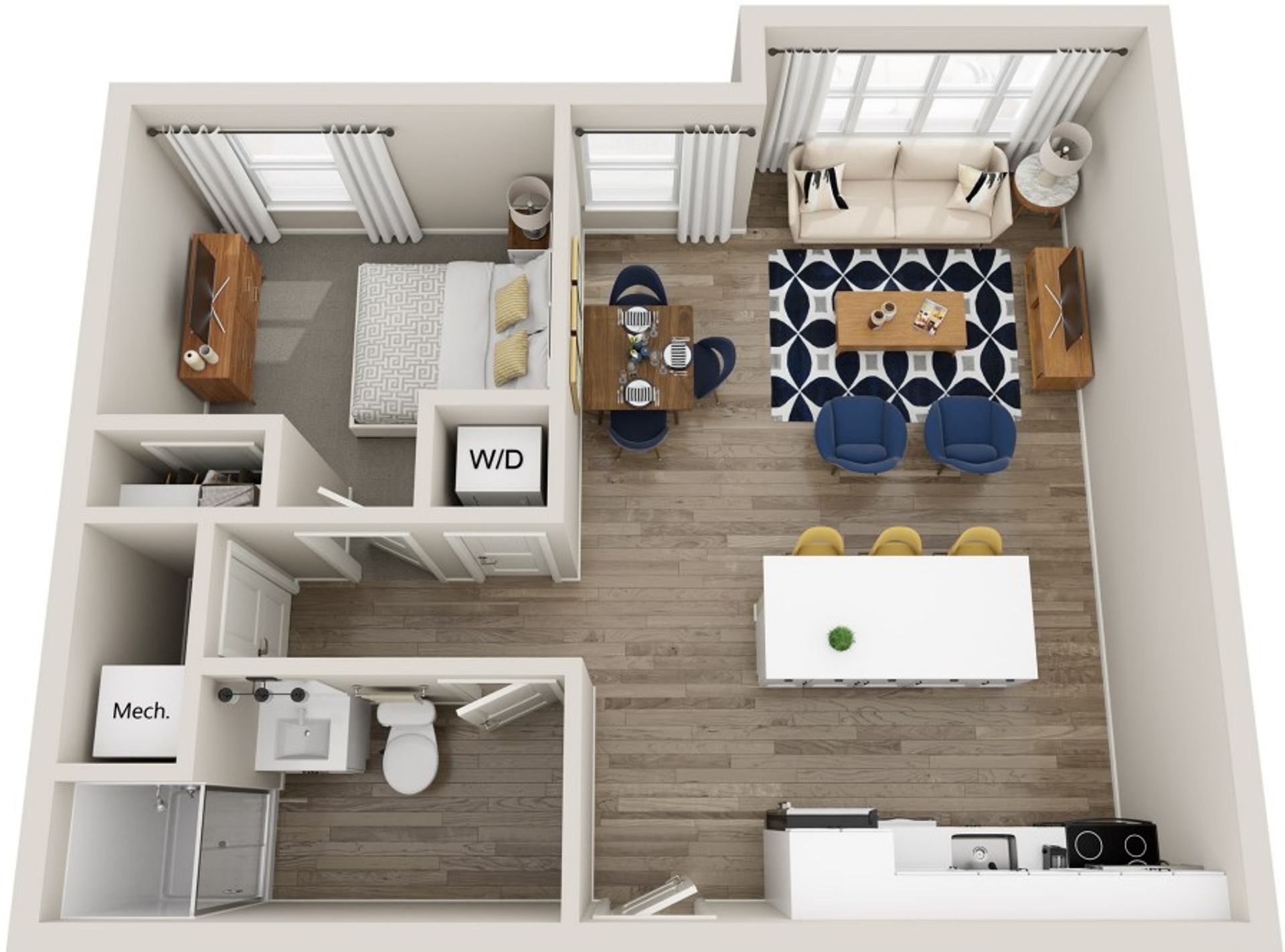 This newly-renovated one-bed, one-bath apartment features high-end appliances, a modern farmhouse inspired design, and neutral finishes to compliment any personal style. You’ll love the open design, chef-inspired kitchen equipped with stainless-steel appliances and kitchen island, modern pendant lighting, and full-size washer and dryer.