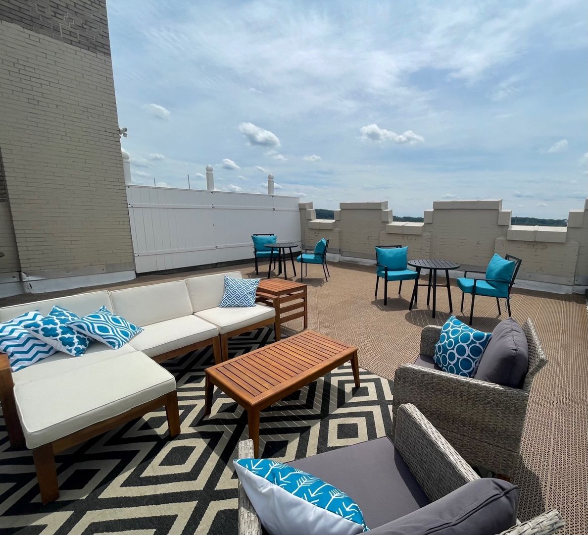 Enjoy stunning views of downtown Rochester on the ninth-floor sundeck! Perfect for laying out on the summer days and listening to all of the music played at every local festival with a glass of wine at night, as well as a great view of the fireworks that frequent the city every year.